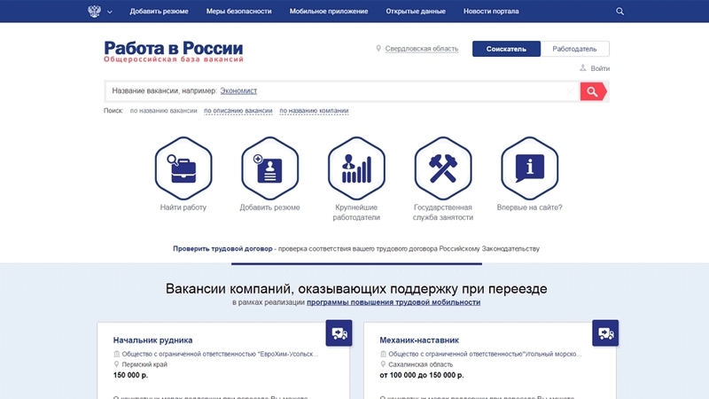 На указанном портале размещается информация о возможностях для трудоустройства граждан, о работодателях, испытывающих потребность в работниках, наличии свободных рабочих мест и вакантных должностей, а также о гражданах, ищущих работу.