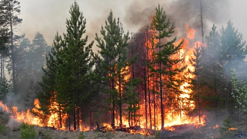 Лесной пожар — стихийное, неуправляемое распространение огня по лесным площадям. Причины возникновения пожаров в лесу принято делить на естественные и антропогенные. Наиболее распространенными естественными причинами больших лесных пожаров обычно являются молнии. Размеры пожаров делают возможным их визуальное наблюдение даже из космоса.