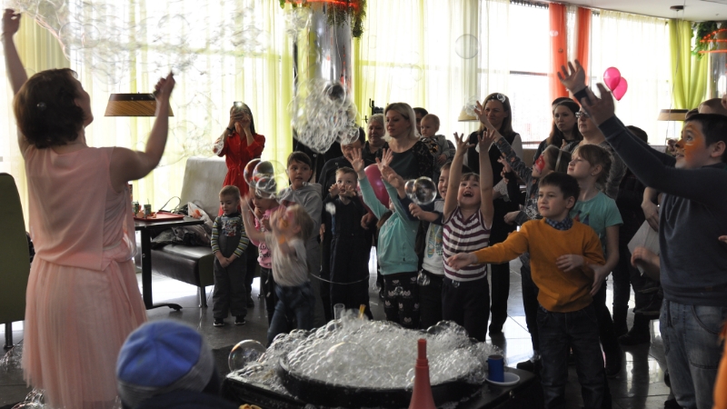Для детей с ограниченными физическими возможностями здоровья была организована развлекательная программа с участием аниматоров, шоу мыльных пузырей, проведен творческий мастер-класс и веселый аквагрим.