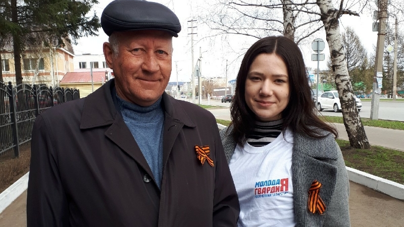 Активисты Альметьевского местного отделения партии «Единая Россия» и ВОО «Молодая Гвардия Единой России» провели акцию «Георгиевская ленточка».