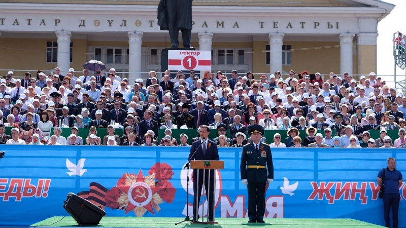 Торжественный парад и масштабные праздничные мероприятия на площади Ленина стали подтверждением значимости этого великого дня для альметьевцев. Знаменную группу, вынесшую на площадь Государственный флаг Российской Федерации, Республики Татарстан и Знамя Победы семитысячная трибуна встретила стоя и аплодисментами.
