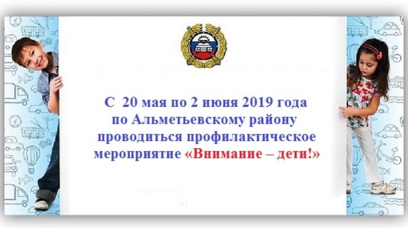В целях предупреждения детского дорожно-транспортного травматизма и восстановления навыков безопасного поведения детей и подростков на дороге в период с 20 мая по 2 июня 2019 года в Республике Татарстан проводиться профилактическое мероприятие «Внимание – дети!».