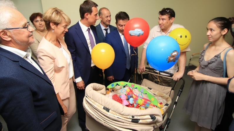Далее почетные гости ознакомились с работой каждого отделения, осмотрели кабинеты, беседовали с врачами и родителями, приняли участие в торжественной выписке, вручили подарки мамам новорожденных детей. Встреча с детьми, рожденными с экстремально низкой массой тела, выхоженными в отделении реанимации детского стационара, была особенной. Мы еще раз убеждались, что уход врачей и забота родителей творят чудеса, теперь они - здоровые, озорные малыши.
