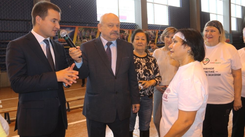 На сегодняшний день одной из главных задач остается повышение роли граждан старшего поколения как активных участников социальных программ и проектов, осуществляемых в республике и в России. Ежегодно количество участников Программы «Активное долголетие» увеличивается. Сейчас более 6000 пенсионеров занимаются каким-либо видом спорта и физической культурой. В планах к 2020 году заинтересовать и привлечь 10000 человек. Для этого в Альметьевске созданы все условия. Все спортивные площадки, подростковые клубы города в первой половине дня, плавательные бассейны и спортивные комплексы предоставляются пенсионерам бесплатно или на льготных условиях. Все расходы за посещение пенсионерами бассейнов при школах города и района субсидируются из средств местного бюджета. В текущем году усилили работу с пенсионерами по месту жительства. С вводом в эксплуатацию спортивного комплекса «Мирас» с залом «Активное долголетие- качество жизни», оснащенным самым современным спортивным оборудование, адаптированным для людей пожилого возраста и людей с ограниченными возможностями здоровья, площадью 400 квадратных метров, расширились возможности для бесплатного посещения бассейна. АО «Альметьевский трубный завод» ввел в эксплуатацию бассейн в санатории - профилактории «Голубое озеро». При Совете ветеранов работают 9 физкультурно - оздоровительных клубов. Так что, людям пожилого возраста есть, где провести свой досуг и поддерживать себя в хорошей физической форме. Об этом они рассказали замминистру. А Васили Самойлов, председатель Совета ветеранов предложил как-нибудь посетить еще спартакиаду пенсионеров «Третий возраст». В этом году количество команд возросло до 40. Спартакиада проходит по 14 видам спорта, добавили в программу пляжный волейбол, пляжный футбол и соревнования по велоспорту.