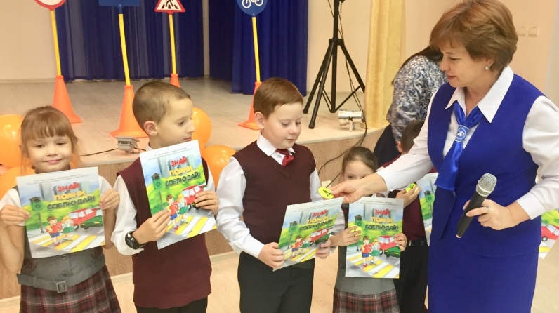 В конце мероприятия 12 первоклассников дружно произнесли клятву пешехода и получили в подарок книгу по ПДД и световозвращающий элемент.