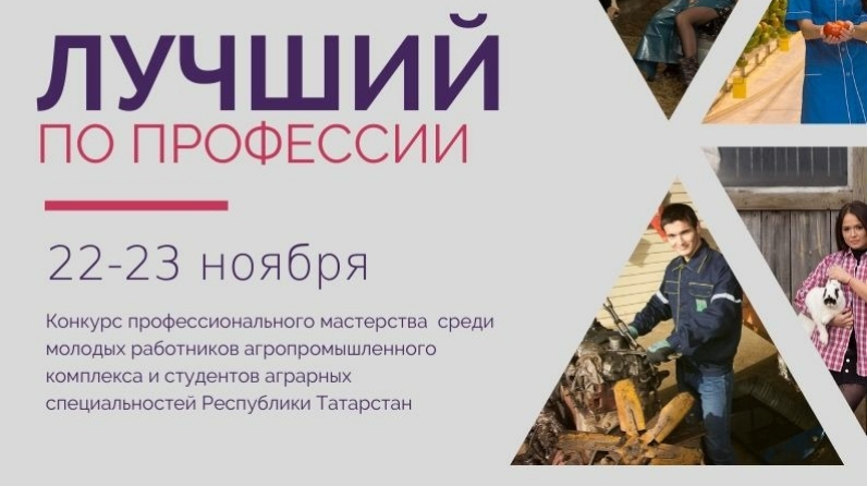 С 22 по 23 ноября в рамках реализации подпрограммы «Сельская молодежь Республики Татарстан на 2014-2020 годы» пройдет конкурс профессионального мастерства «Лучший по профессии» среди молодых работников агропромышленного комплекса Республики Татарстан. Организаторами конкурса выступают региональная общественная организация «Аграрное молодежное объединение Республики Татарстан», Министерство сельского хозяйства и продовольствия Республики Татарстан и Министерство по делам молодёжи Республики Татарстан.