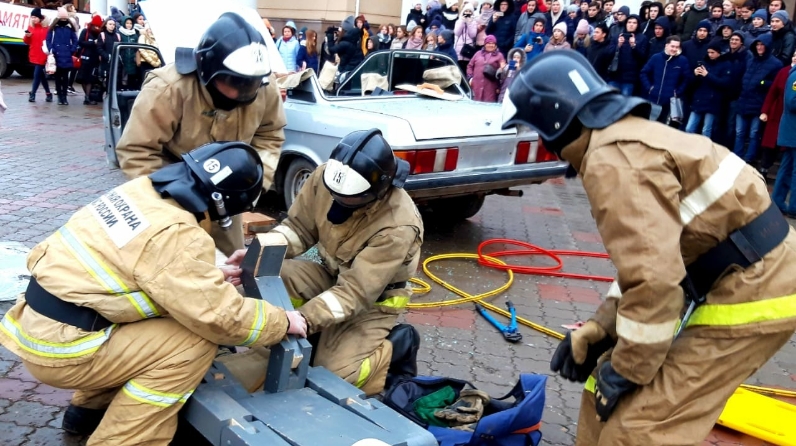 В завершение широкомасштабной акции на площади перед «Молодежным центром» спасатели наглядно продемонстрировали процесс извлечения «пострадавшего» водителя из автомобиля, якобы попавшего в ДТП. Это событие стало впечатляющим и незабываемым!