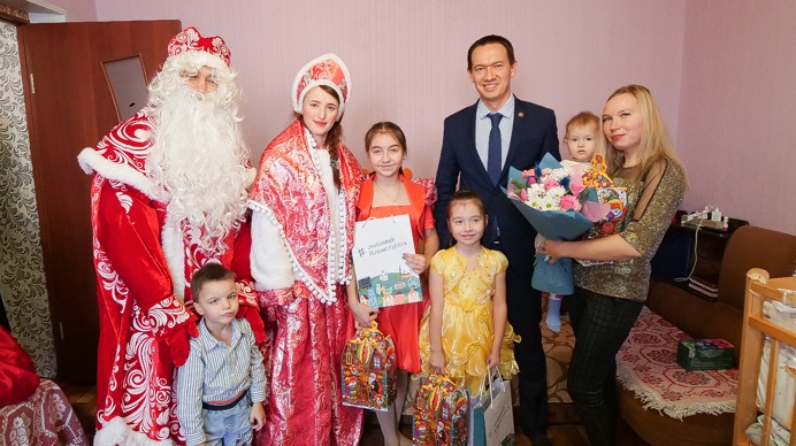 Сегодня глава района Тимур Нагуманов вместе с Дедом Морозом и Снегурочкой пришли в гости и поздравили детей семьи Илларионовых. Глава вручил малышам подарки и пожелал всего самого наилучшего в наступающем году.