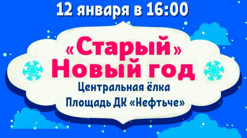 12 января в 16.00 часов около центральной елки на площади возле ДК «Нефтьче» начнется праздничное мероприятие , посвященное старому Новому году.
