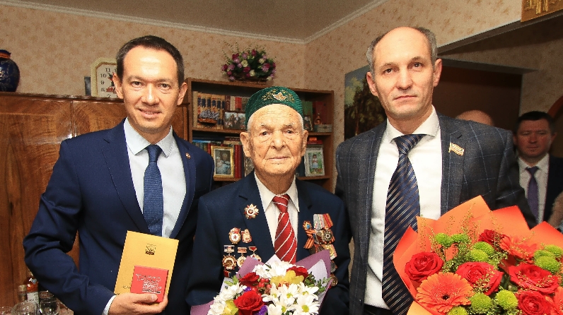 Глава Района Тимур Нагуманов вручил памятную медаль 100-летия ТАССР и пожелал еще долгих лет жизни.