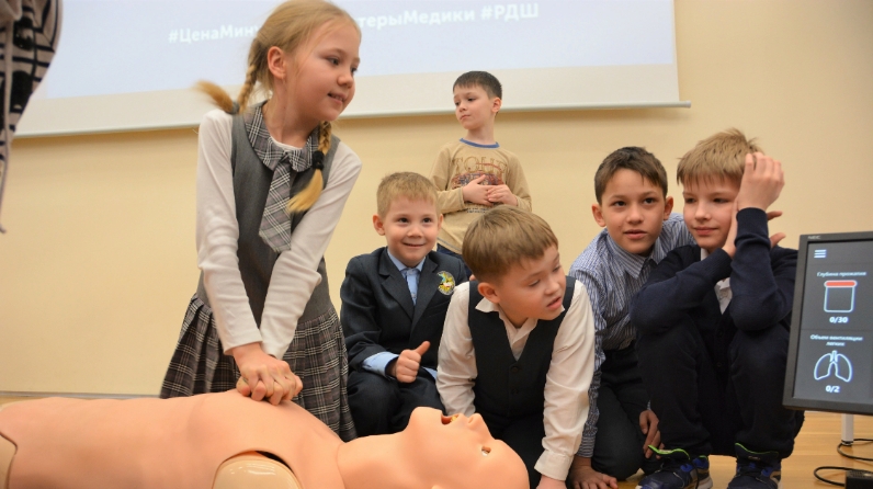 Детям рассказали, как правильно оказывать экстренную доврачебную помощь до приезда бригады «скорой помощи». Продемонстрировали на манекене-симуляторе основы сердечно-легочной реанимации.