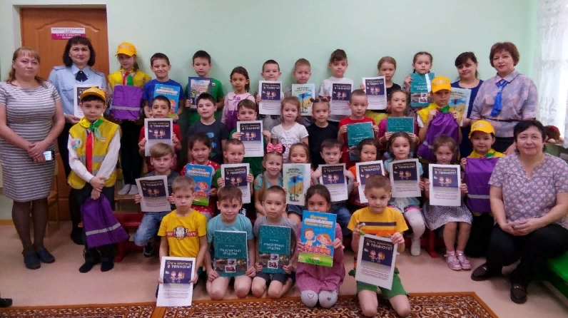 Малыши также посмотрели поучительный фильм с портала «Сакла». Дети проявили живой интерес и искренние чувства! Вот так ЮИДовцы пропагандируют правила безопасного поведения на дорогах среди дошколят! За это им были вручены заслуженные подарки, а детскому саду полезные тематические книжки.