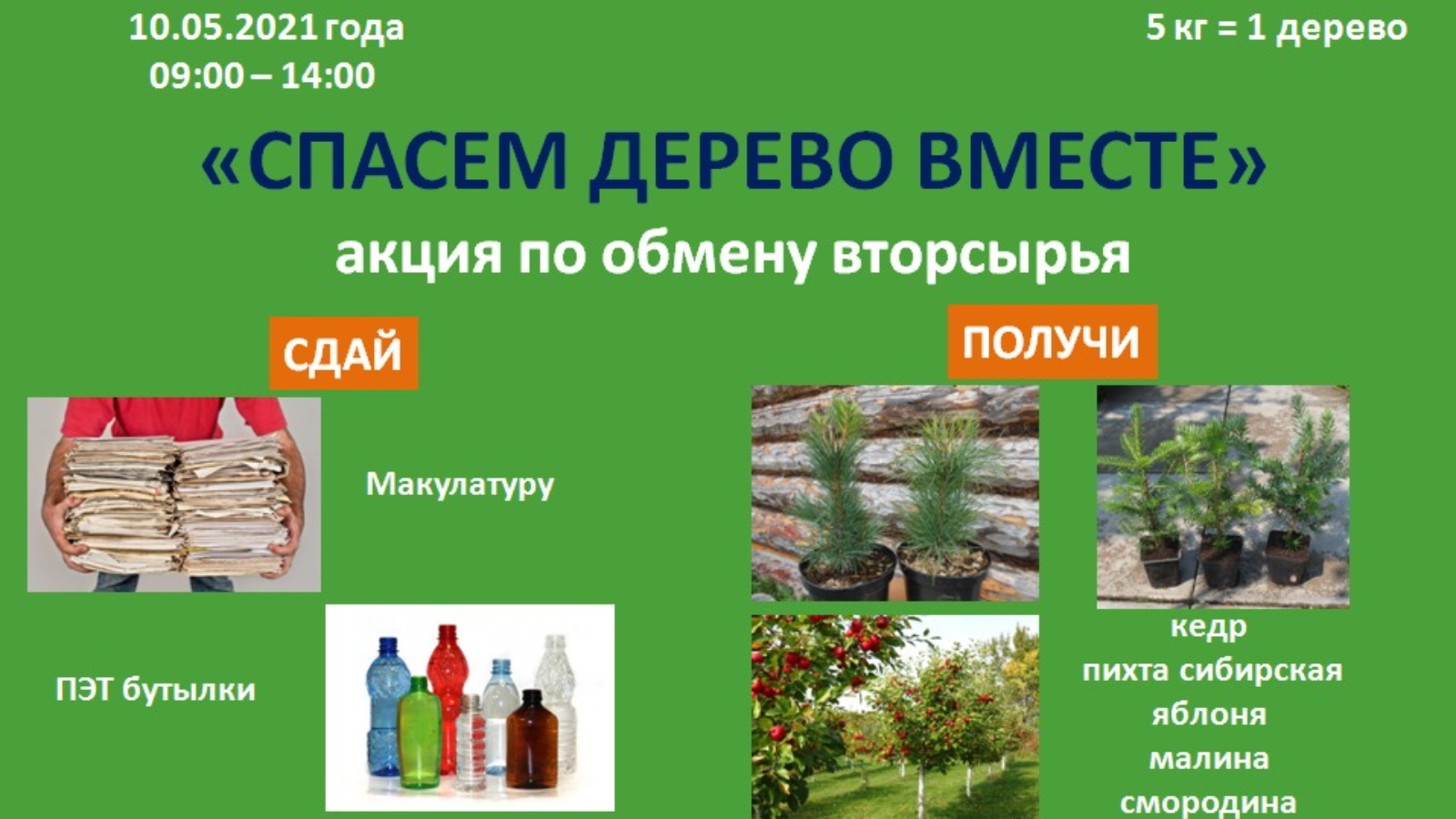 10 мая 2021 года МБУ «Департамент экологии и благоустройства» совместно с АО «Экосервис» проводит ежегодную акцию «Спасем дерево вместе» по приему вторсырья.