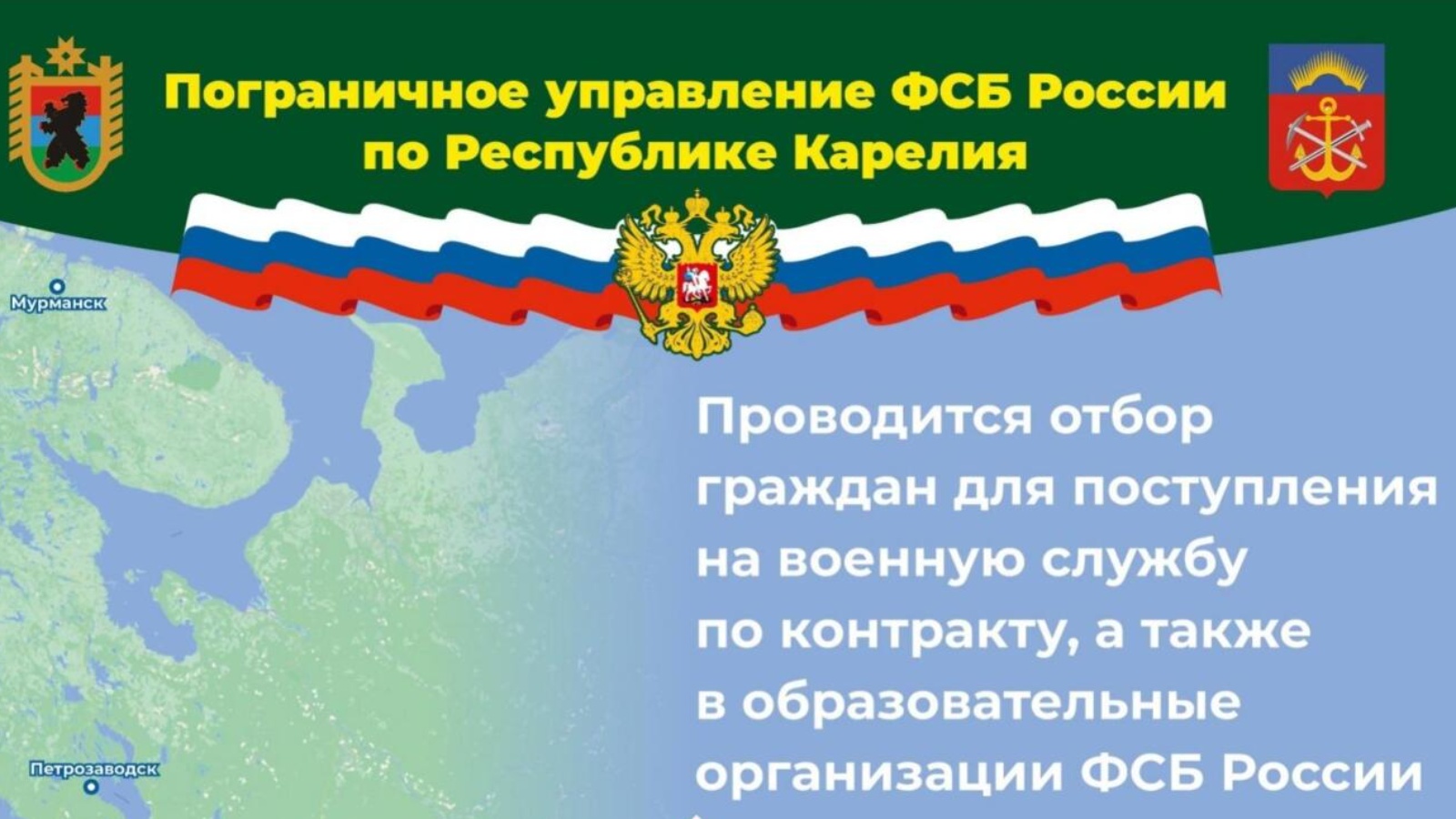 Пограничное управление ФСБ России по Республике Карелия проводит отбор граждан для поступления на военную службу по контракту, а также