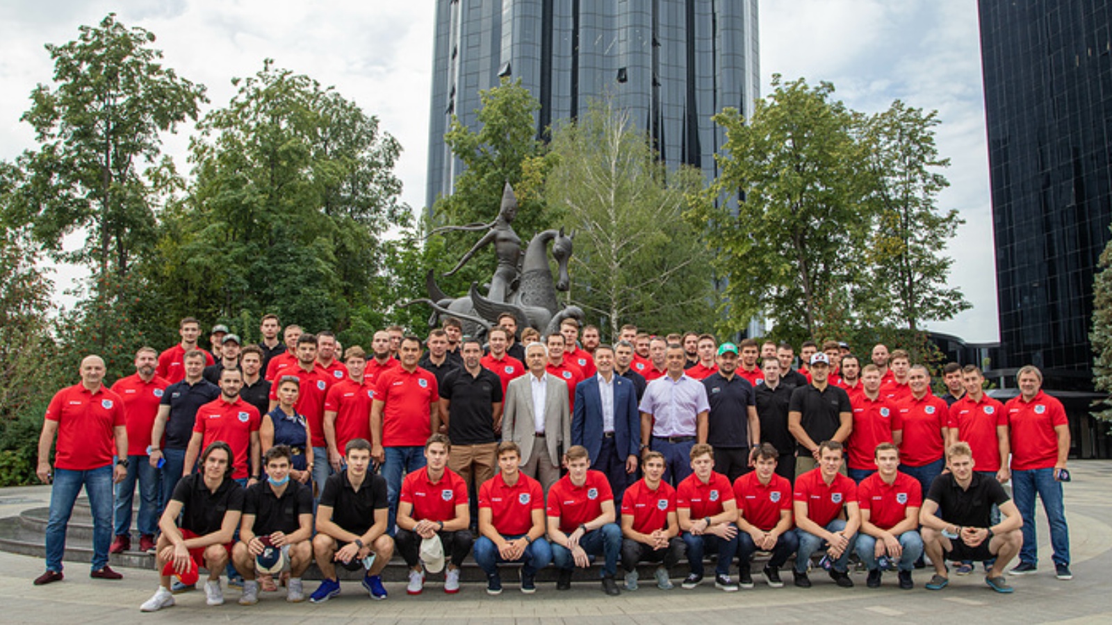 Сегодня вечером «Нефтяник» и «Ак Барс» проведут товарищеский матч. Утром этой встрече предшествовала обширная экскурсионная программа. Она началась с общей фотографии в сквере Каракуз на фоне штаб-квартиры компании «Татнефть». С приветствием к хоккеистам обратились заместители генерального директора компании Ринат Шафигуллин и Азат Ягафаров.