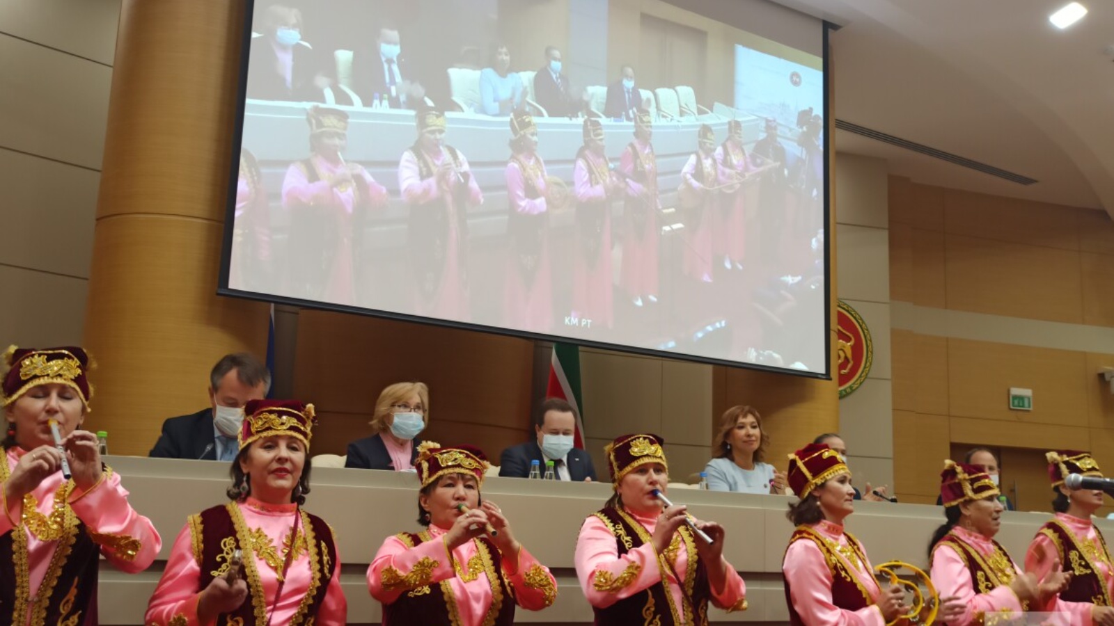 Традиционный брифинг для представителей СМИ в Доме правительства Татарстана, посвященный предстоящей Декаде пожилых людей, сегодня выбился из протокольных рамок. Он начался выступлением ансамбля пожилых людей из Балтасинского района Татарстана. Артисты исполнили два творческих номера перед собравшимися в зале журналистами.