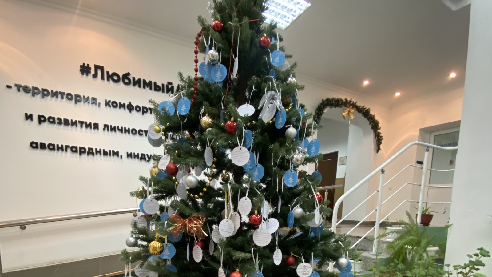В фойе здания Исполнительного комитета Альметьевского муниципального района по адресу ул. Ленина, д. 39 установлена елка, на которой размещены открытки с информацией о ребенке: ФИО, возраст, желаемый подарок и контактный телефон одного из родителей.