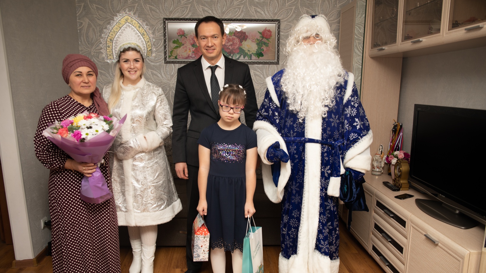 Глава Альметьевского муниципального района Тимур Нагуманов вместе с Дедом Морозом и Снегурочкой исполнил новогоднюю мечту 12-летней Сюмбель Насыбуллиной.