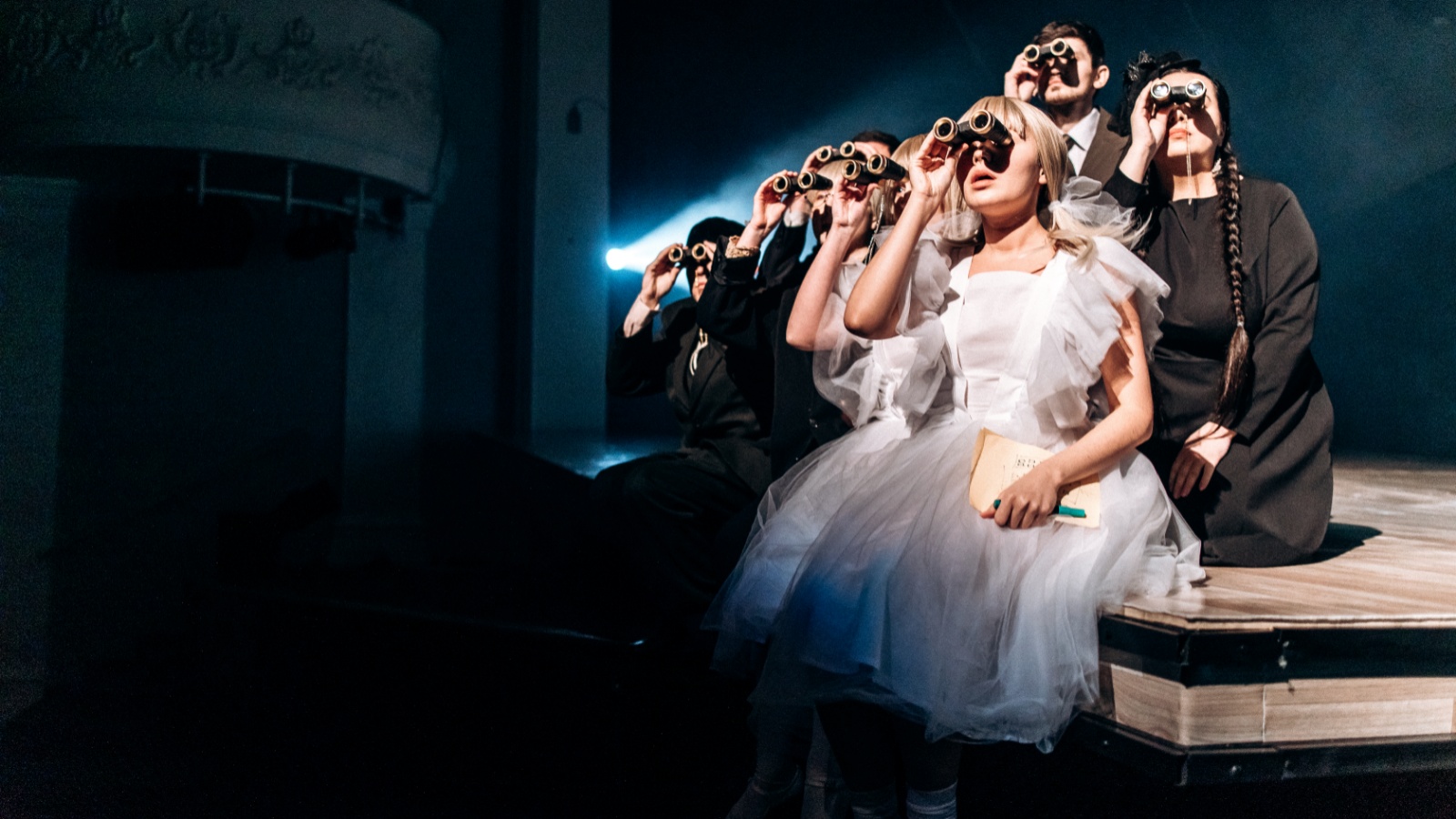 Значительна роль и двух девушек-ангелов в белых платьях. Они по ходу спектакля помогают актерам играть роль, читают по очереди авторский текст, и даже оказываются родившимися у Анны и Шамси младенцами.
