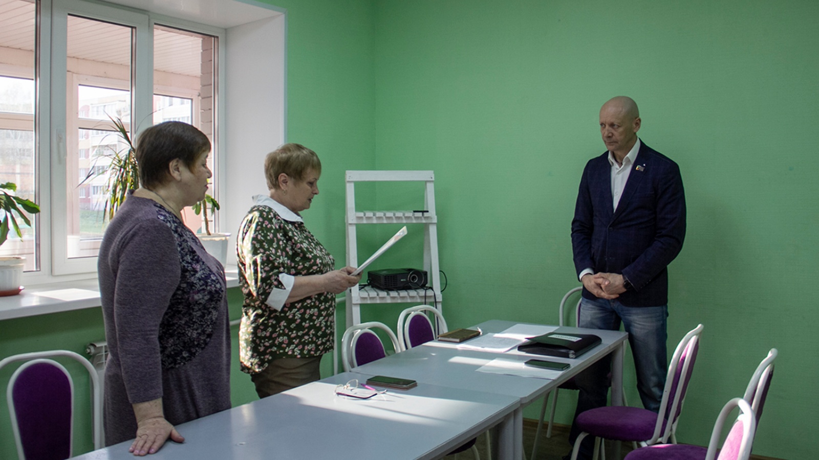 В этот же раз представители совета дома №29б по ул. Гафиатуллина Валентина Рыкова и Любовь Павлова на встречу пришли с Благодарственным письмом и вручили его Вячеславу Колотовкину.