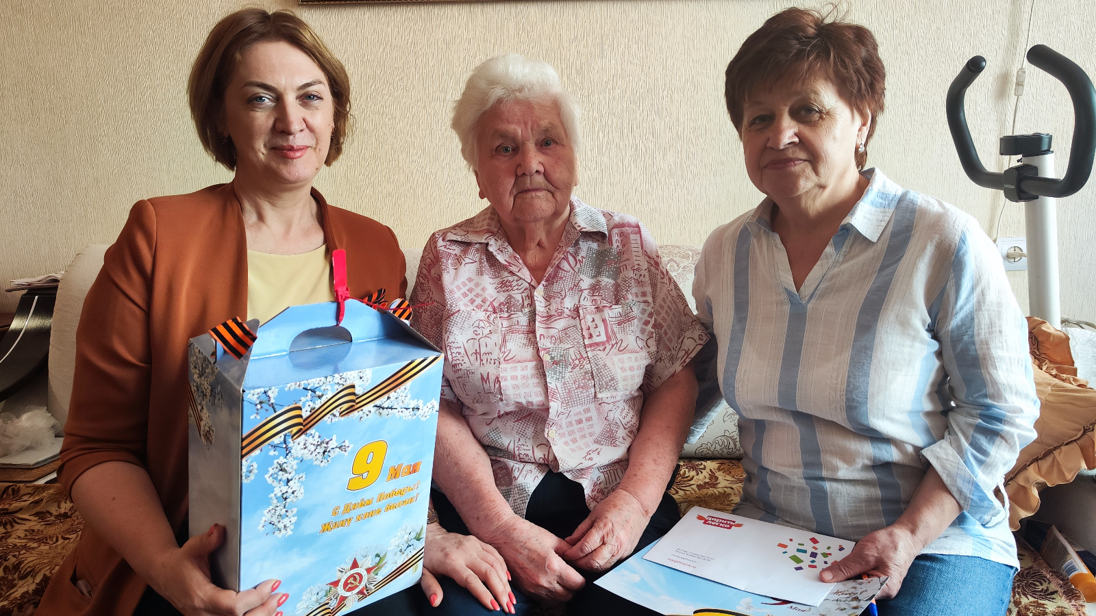 Главный врач Альметьевской ЦРБ Вера Головина вместе с председателем совета ветеранов ЦРБ Флерой Галлямовой поздравила с праздником бывшую сотрудницу районной больницы, труженицу тыла - Кошаеву Евдокию Григорьевну.
