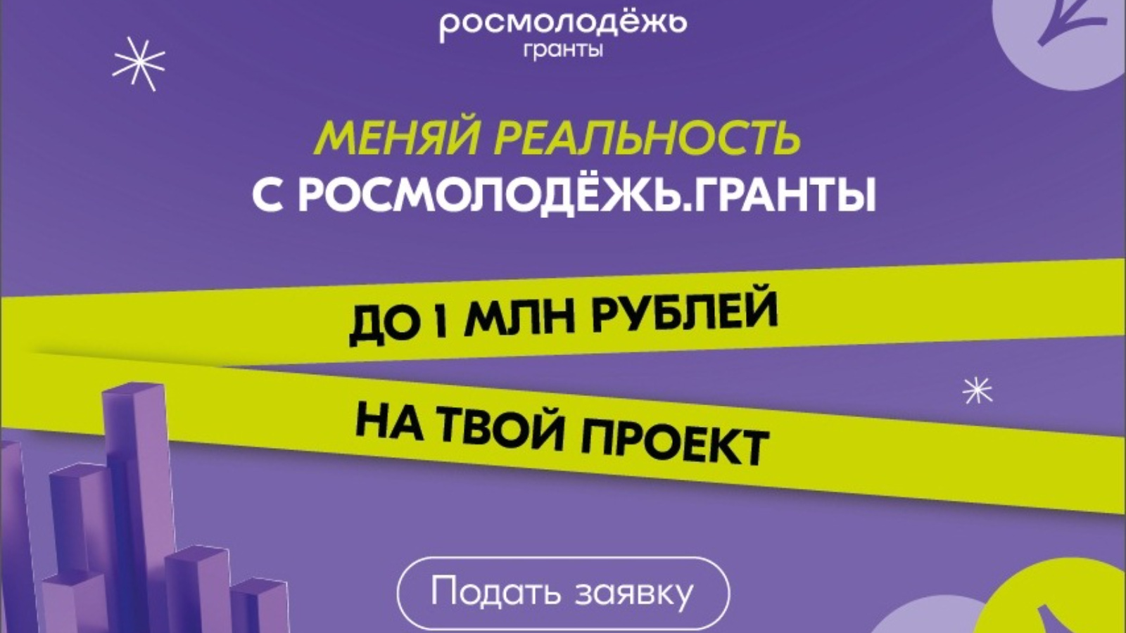 Федеральное агентство по делам молодежи с 20 августа по 24 сентября 2023 года проводит прием заявок на конкурс «Росмолодежь.Гранты 2 сезон» среди граждан Российской Федерации в возрасте от 14 до 35 лет (включительно). Конкурс направлен на вовлечение молодежи Российской Федерации в творческую деятельность и социальную практику, а также на повышение гражданской активности, формирование здорового образа жизни и раскрытие потенциала молодежи в интересах развития страны.