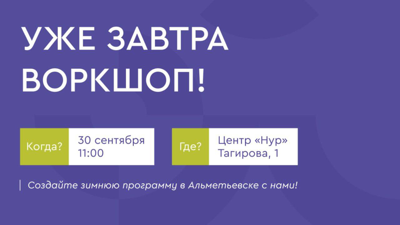 Завтра в 11:00 в Центре «Нур» (ул. Тагирова, 1) мы будем обсуждать событийное наполнение общественных пространств в зимнем сезоне и новогоднее оформление.