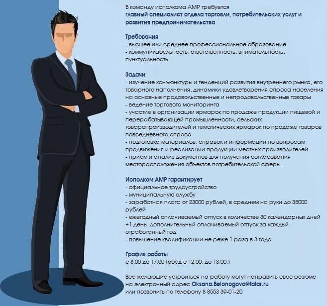 В команду исполкома Альметьевского муниципального района требуется главный специалист отдела торговли, потребительских услуг и развития предпринимательства
