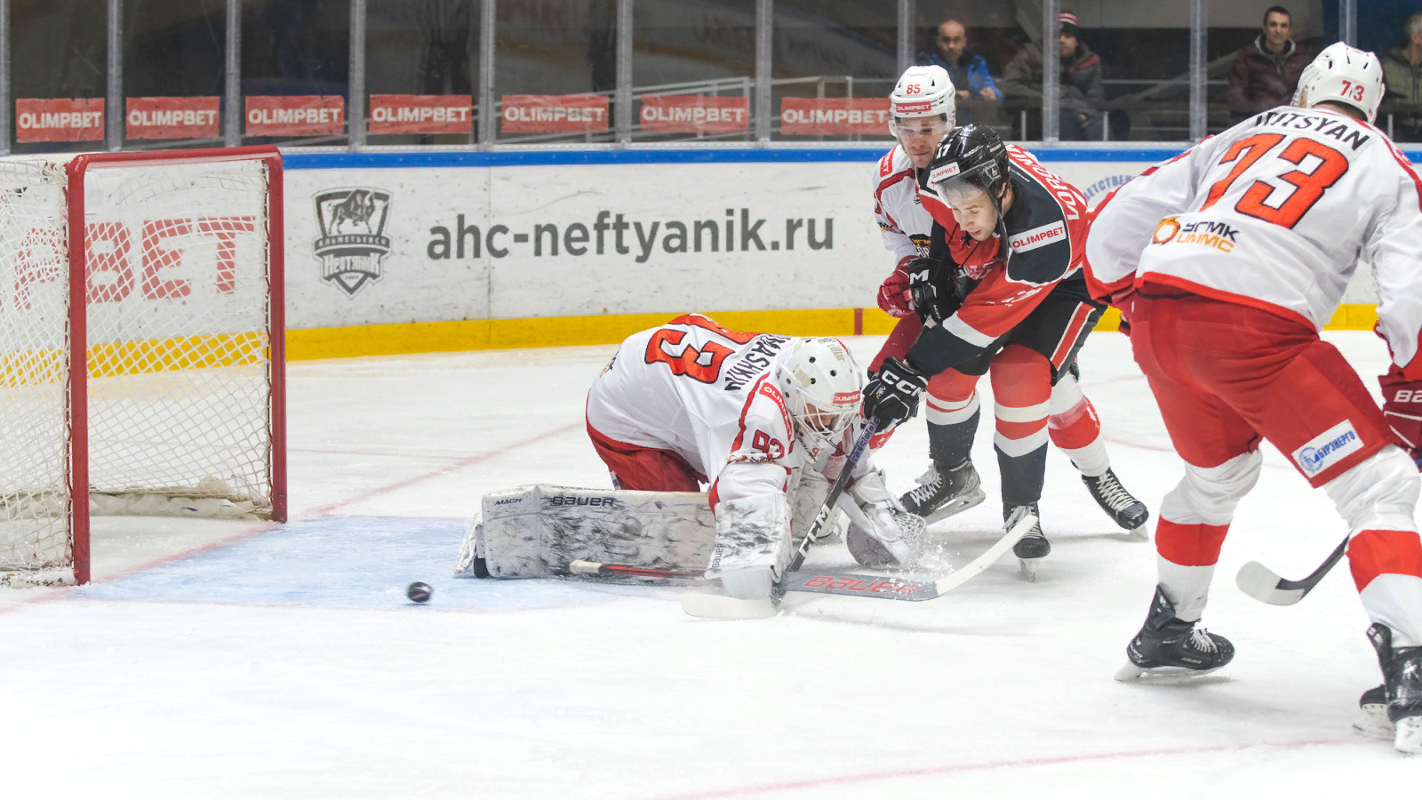 Матч «Нефтяника» с «Горняком-УГМК» начался сумбурно. Сначала, прямо на стартовом вбрасывании, после столкновения на льду оказался главный арбитр. Первая минута еще не истекла, а судьям уже понадобился просмотр на предмет наложения большого штрафа – в итоге игроку гостей было выписано пять минут. А чуть позже «Горняк-УГМК» остался втроем. Этим воспользовался Михаил Мокин – 1:0. Только хозяева реализовали одно преимущество «пять на три», как гости предоставили еще один такой же шанс. Это большинство реализовал Артур Бровкин. Таким образом хозяева создали комфортное преимущество в две шайбы уже к шестой минуте встречи.