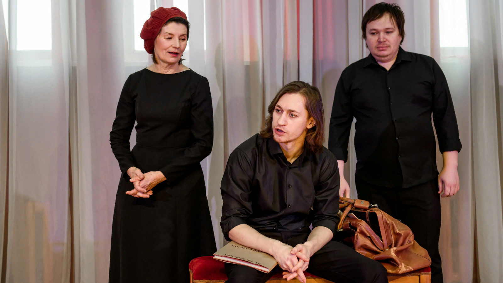 Всего три артиста воплотили на сцене непростую судьбу писателя, прошедшего через две войны - Гражданскую, Первую мировую. Во время Великой Отечественной он работал в тылу.
