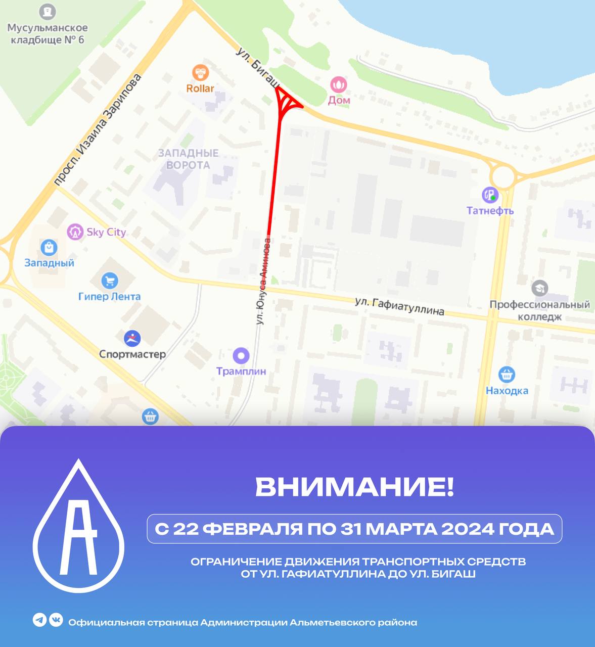 В связи с этим, будет временно ограничено движение транспортных средств по участку от улицы Гафиатуллина до улицы Бигаш. Дорожные полосы будут перекрыты частично, по мере проведения работ.