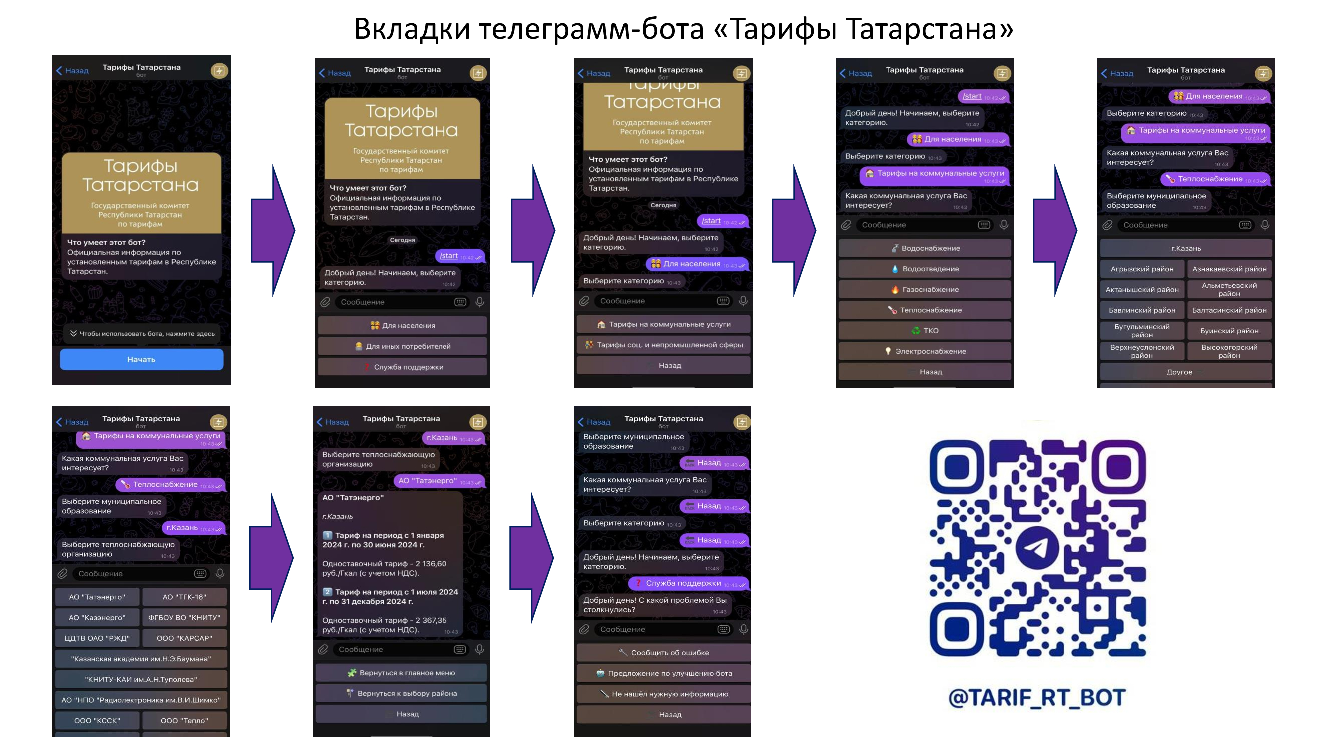 В целях информирования жителей республики о действующих тарифах Государственным комитетом Республики Татарстан по тарифам в 2023 году спроектирован телеграмм - бот «Тарифы Татарстана».