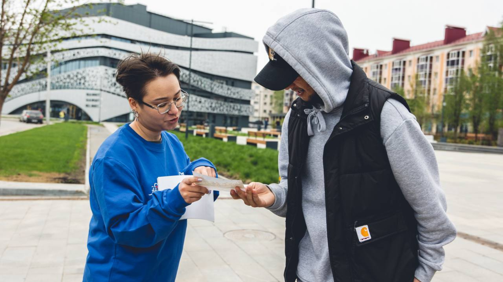 Молодые люди ежедневно дежурят в нескольких точках города, чтобы рассказать и показать жителям, как принять участие в ежегодном рейтинговом голосовании по отбору территорий для благоустройства.