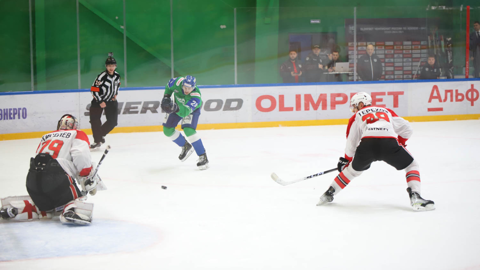 Нефтекамцы с самого начала встречи действовали чуть более активно. На 12-й минуте, в ходе натиска на ворота Евгения Киселёва, шайба оказалась в его воротах. Ответный гол не заставил себя долго ждать. Всего через 36 секунд дальним броском равенство восстановил Ислам Гарайшин. Перед перерывом «Торос» вновь повел в счете.
