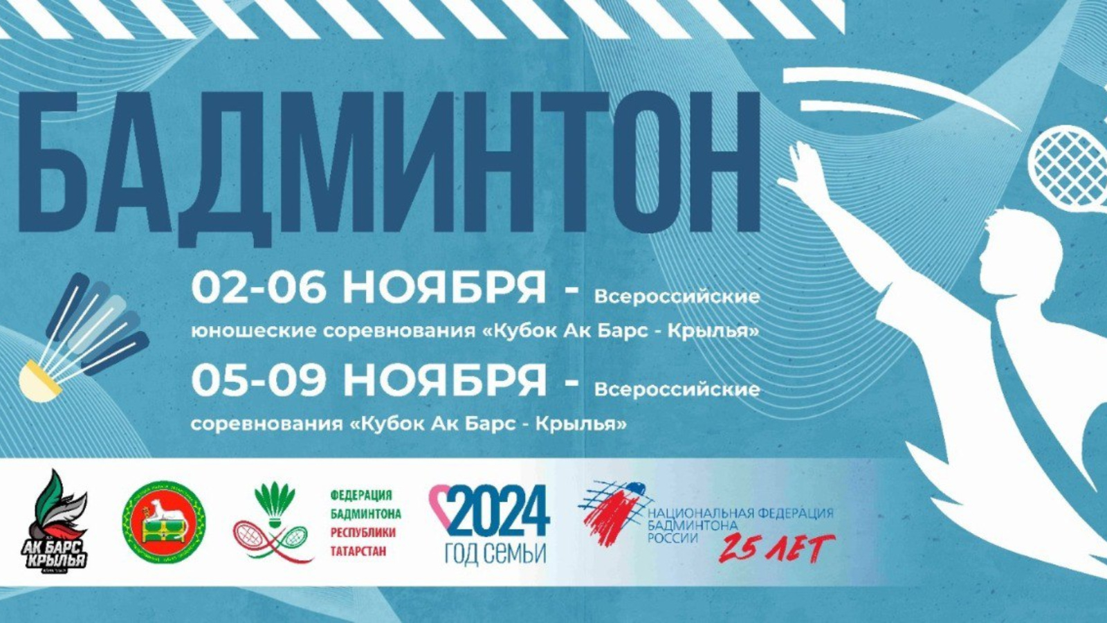 3 ноября в Альметьевске состоятся соревнования по бадминтону в рамках Всероссийского турнира «Кубок Ак Барс – Крылья»!