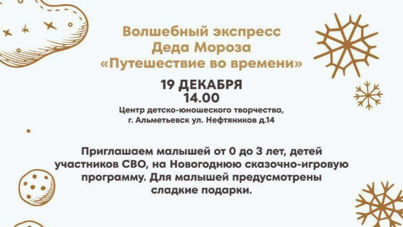 В преддверии Новогодних праздников, 19 декабря в 14:00 в Центре детского-юношеского творчества состоится интерактивное представление «Волшебный экспресс Деда Мороза «Путешествие во времени»».