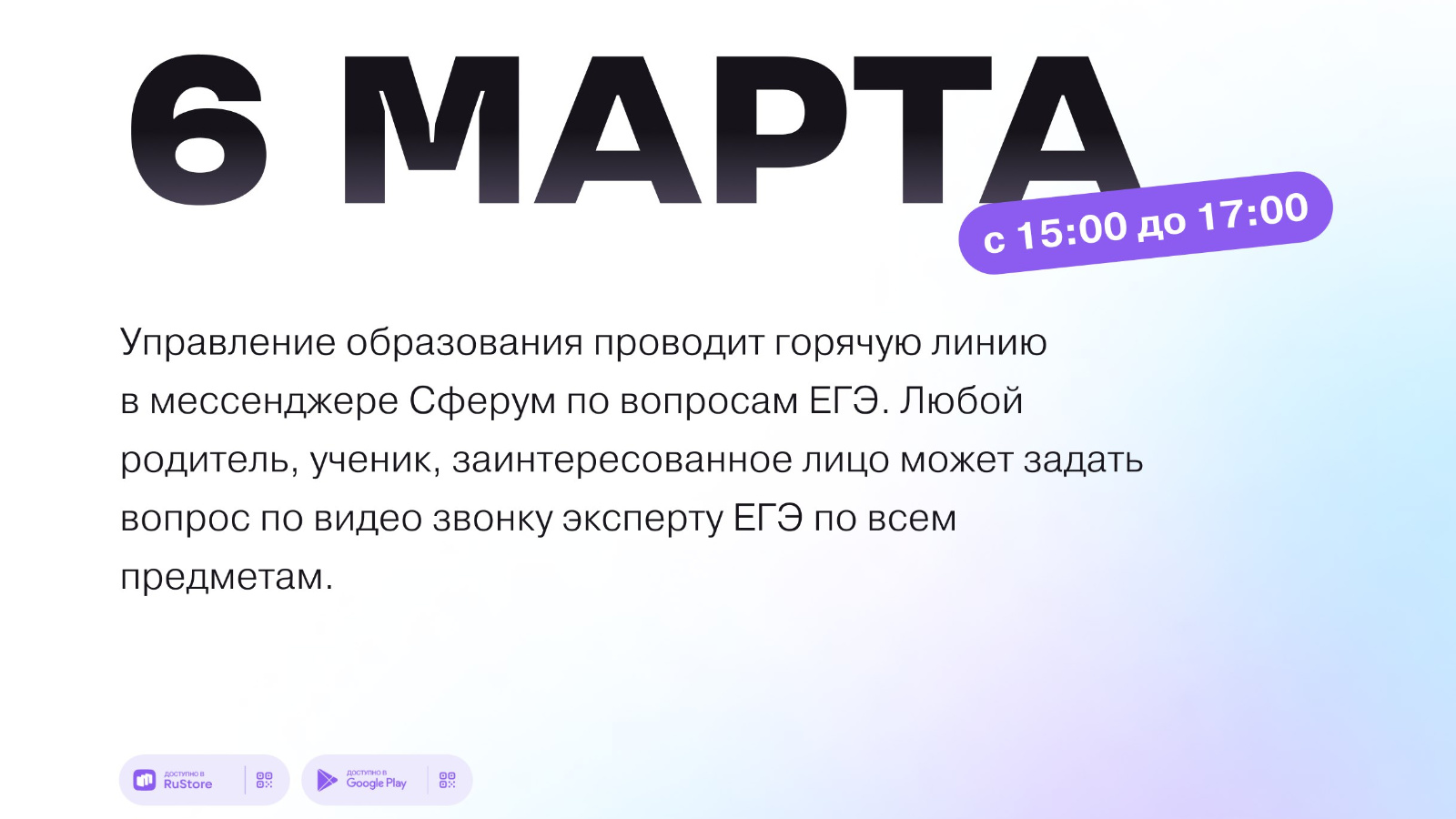 6 марта с 15:00 до 17:00 Управление образования проводит горячую линию в мессенджере «Сферум»!