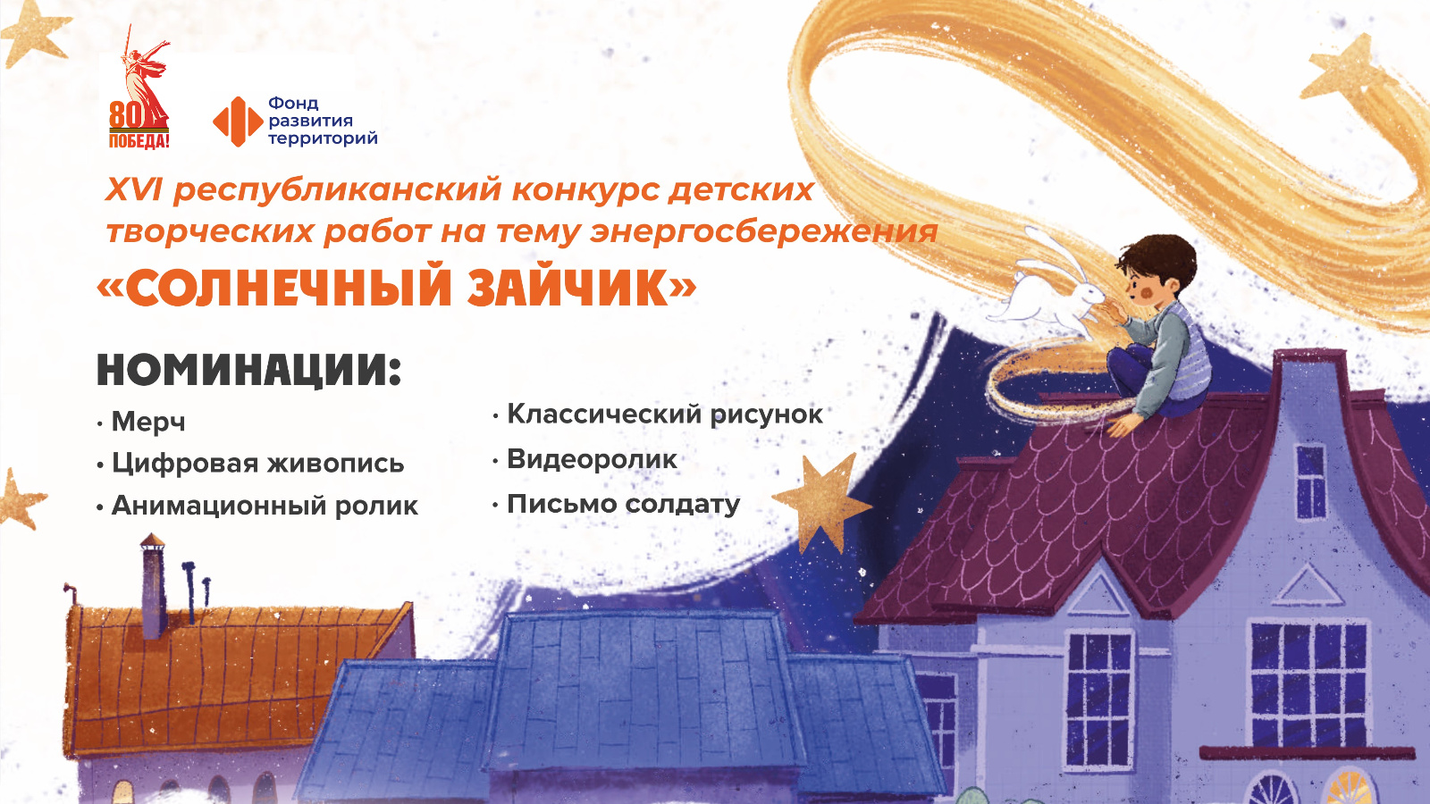 АО «Татэнергосбыт» приглашает всех юных жителей Казани и Республики Татарстан в возрасте от 4 до 17 лет принять участие в конкурсе «Солнечный зайчик». Конкурсные работы можно принести в любой филиал или офис клиентского обслуживания АО «Татэнергосбыт», а также направить по почте по адресу: 420059, Республика Татарстан, г. Казань, ул. Павлюхина, д.110 «В».