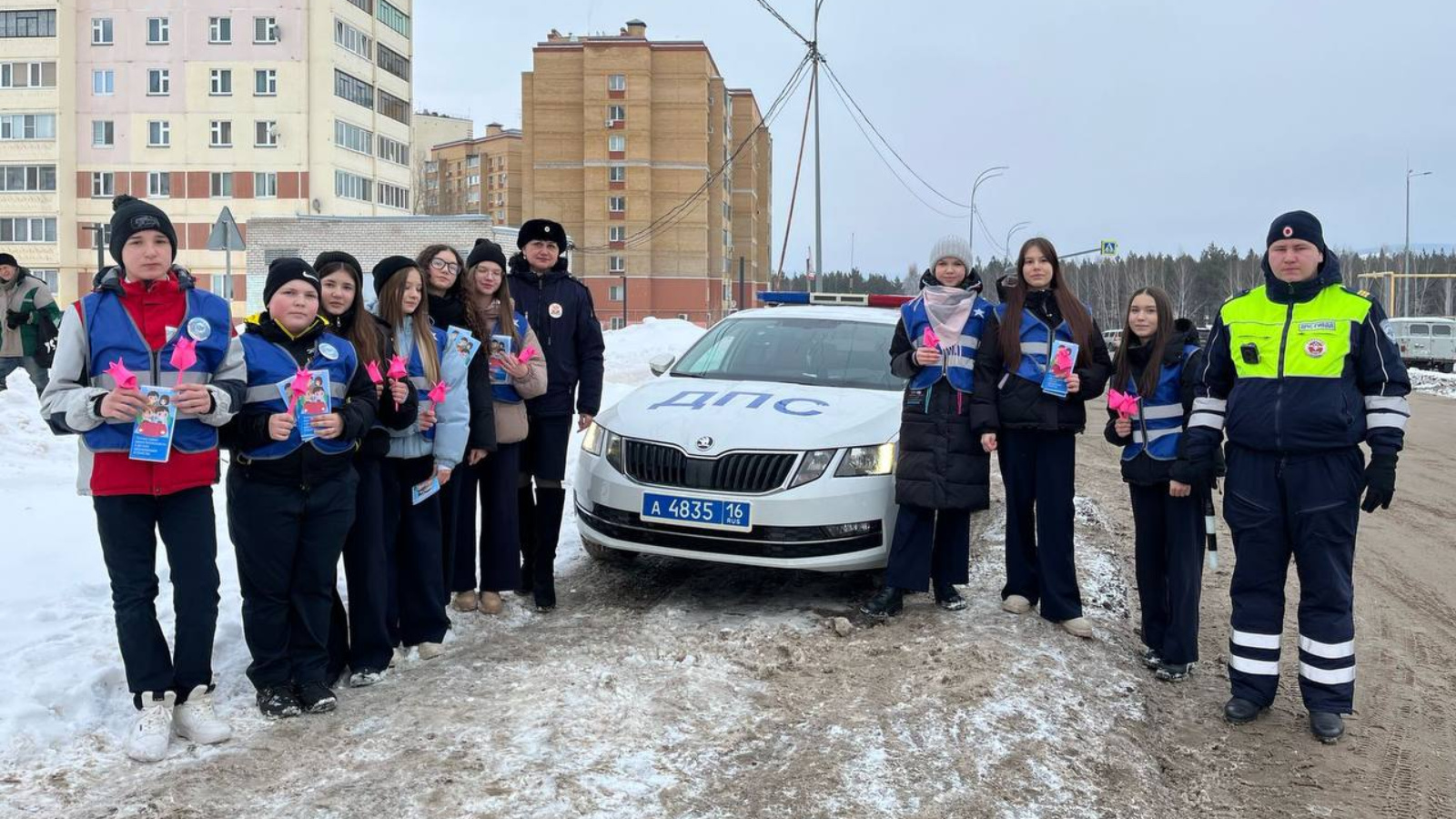 На улице Аминова г. Альметьевска прошла необычная акция, организованная отрядом ЮИД «Инженерного лицея» Юные инспекторы дорожного движения провели сразу две важные акции: «С 8 марта поздравляем - ПДД не нарушаем» и «Ребенок - главный пассажир».