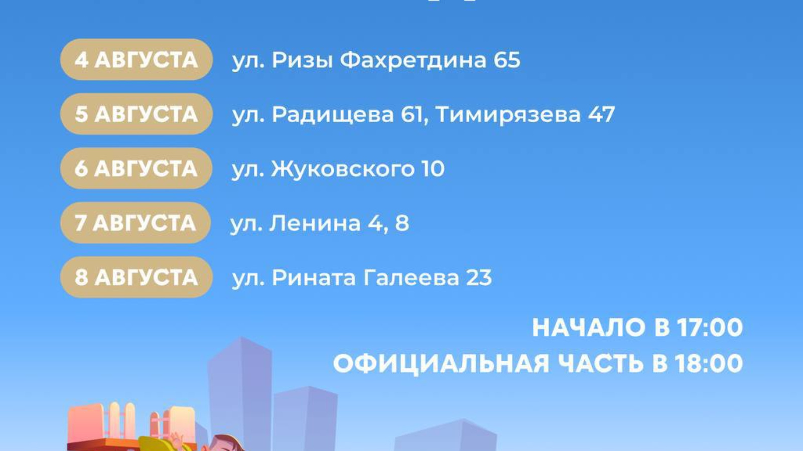 Первый праздник пройдет уже сегодня в 17:00 по адресу: ул. Р. Фахретдина, д. 65.