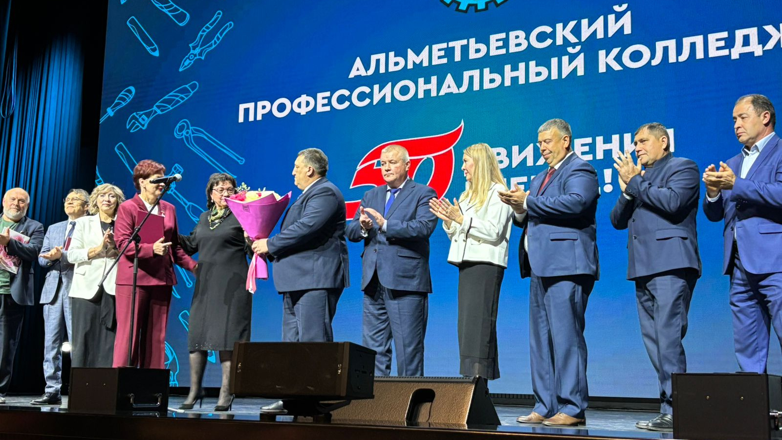 Поздравления от имени Главы района передал коллективу руководитель исполнительного комитета Альметьевского муниципального района Айдар Каюмов: «За эти полвека колледж стал не просто частью города, а его сердцем, настоящей кузницей кадров для всего Татарстана. Тысячи отличных специалистов, которые сегодня работают на наших предприятиях, воспитывались именно в этих стенах. Своим рождением 50 лет назад колледж обязан заводу «Радиоприбор». Эта прочная связь промышленности и образования стала фундаментом для тысяч успешных судеб. Особая гордость – это проект «Колледж будущего Татарстана», который показал всей России, как нужно готовить профессионалов новой формации. Но все мы знаем, что колледж – это в первую очередь люди. Это вы – его преподаватели и сотрудники. Именно вы своим трудом, талантом и любовью к делу делаете из вчерашних школьников настоящих мастеров. Особую благодарность мы выражаем нашим дорогим ветеранам. Ваш труд стал основой для успехов выпускников, которые сегодня трудятся на ведущих предприятиях: на заводах, в нефтяной отрасли и машиностроении».