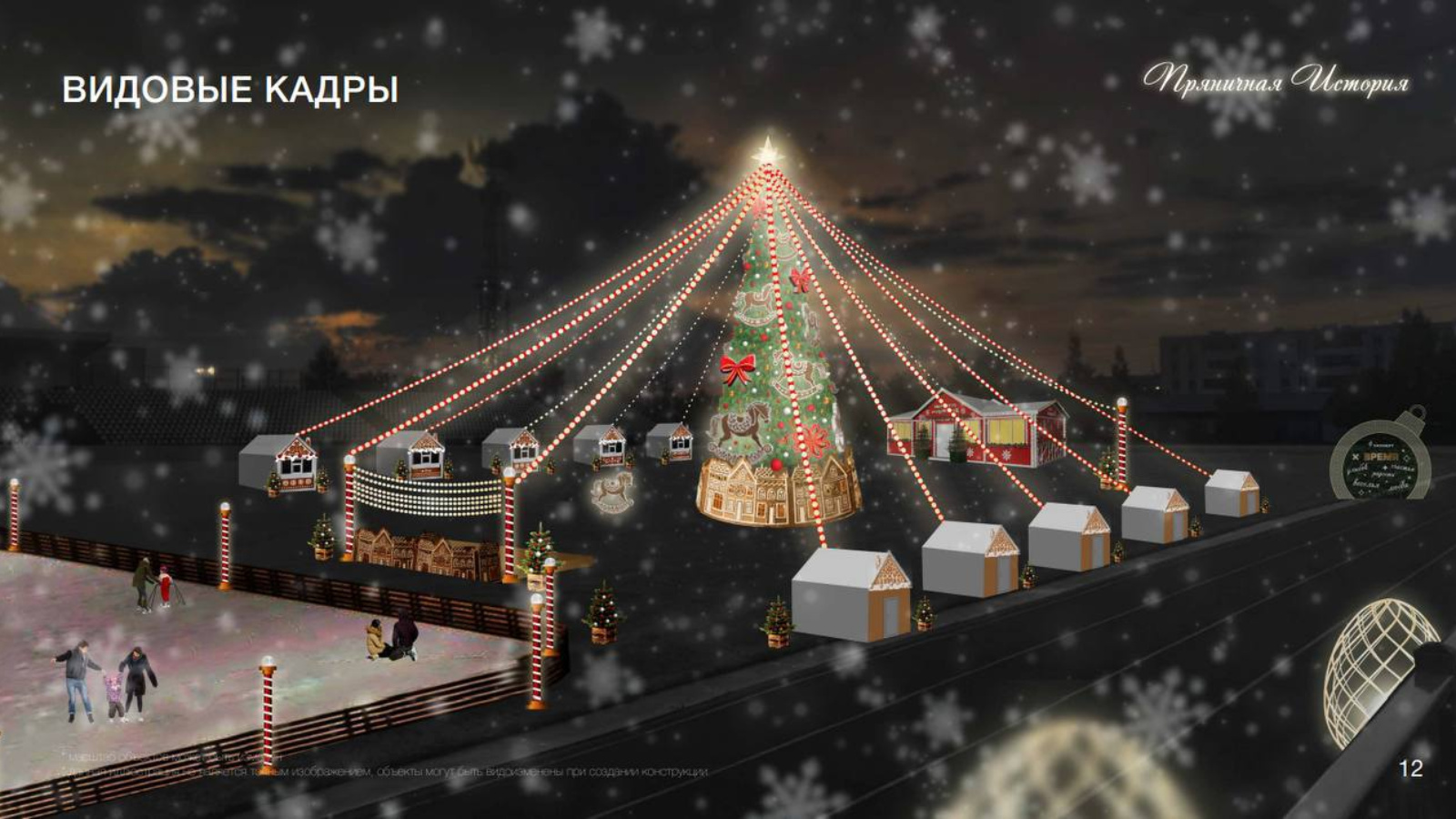 Концепция праздничного оформления стадиона получила название «Пряничная история». Вдохновением для декораторов послужил один из самых узнаваемых символов зимних праздников – рождественский пряник. Красно-белые элементы на опорах и световых конструкциях, напоминающие новогодние леденцы, создадут атмосферу настоящей сладкой зимней сказки.