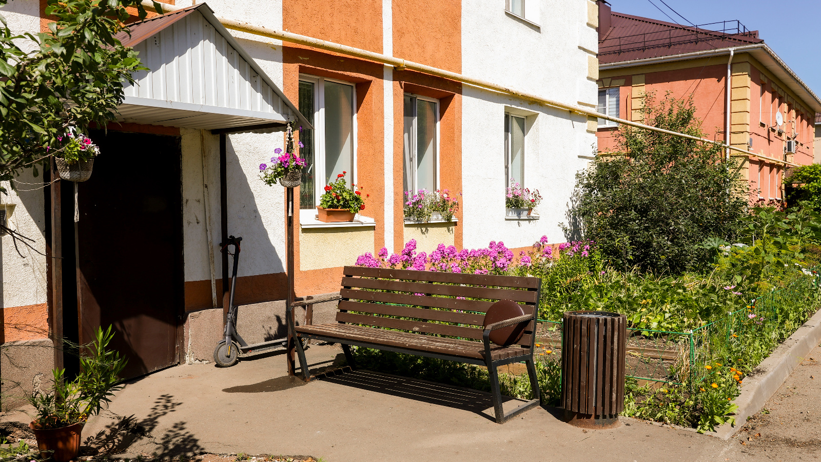 На месте, где когда-то реализовывалась программа «Наш двор», теперь летом цветут яркие клумбы, зреют полезные овощи на грядках и даже вызревает виноград. Это прекрасный пример того, как общими усилиями можно преобразить обычное городское пространство в уютный и цветущий уголок.