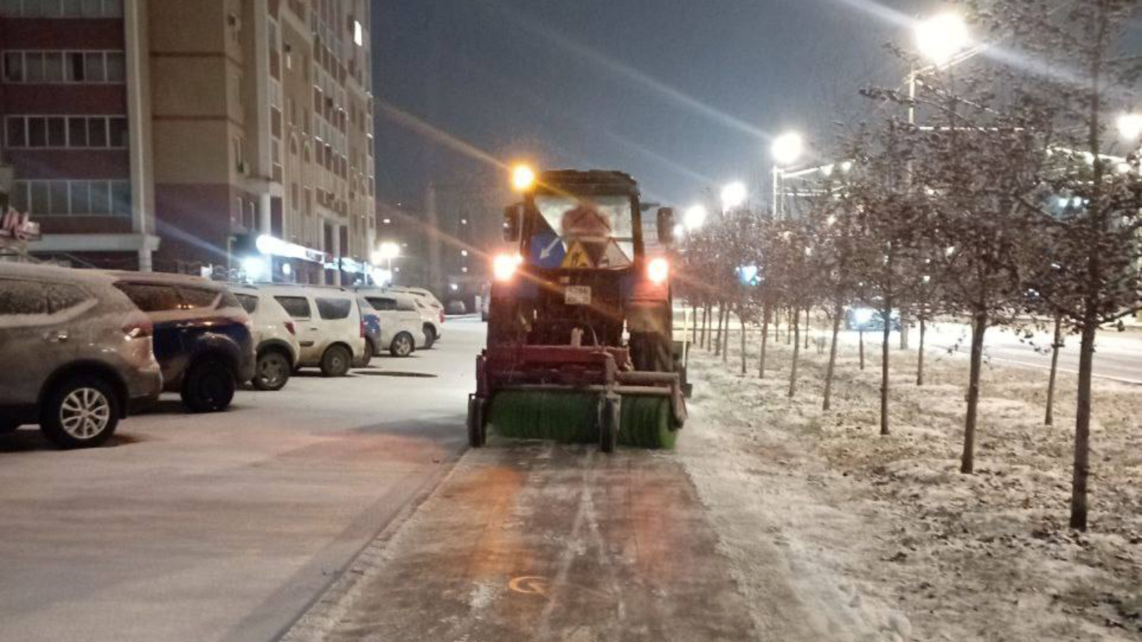 Пока город ещё спал, АО «ГУАД» уже приступило к работе. В ночное время на очистку дорог от снега вышли 6 единиц специализированной техники.