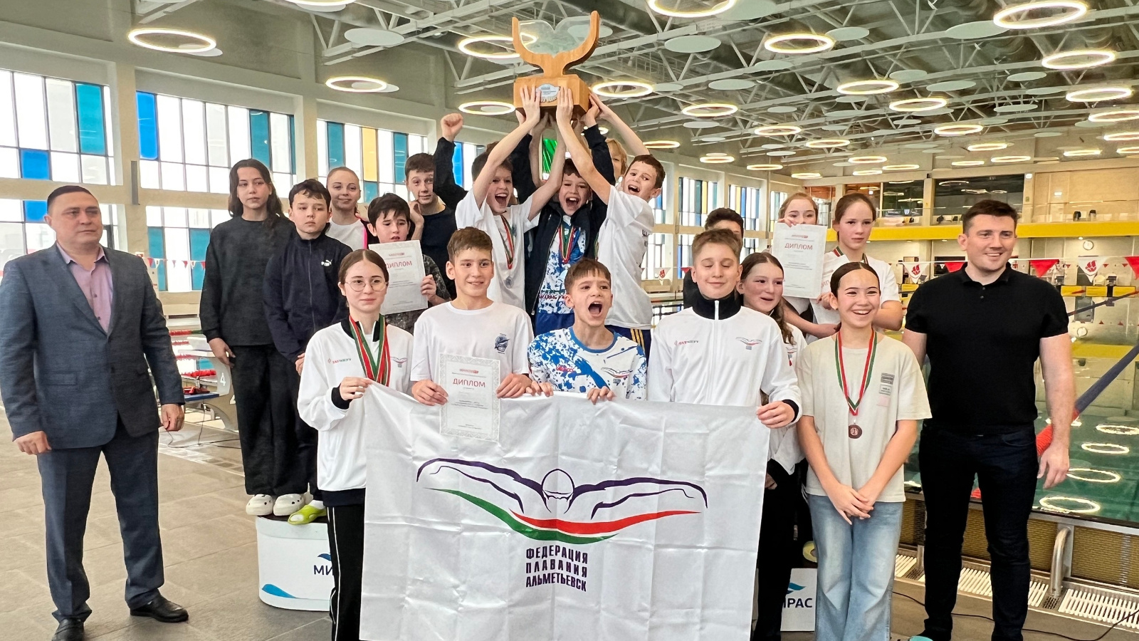 Поздравляем наших пловцов с заслуженной победой! Благодарим за поддержку Министерство спорта РТ, Управление по физической культуре и спорту Альметьевского района и Федерацию плавания г. Альметьевска за высокий уровень организации соревнований.