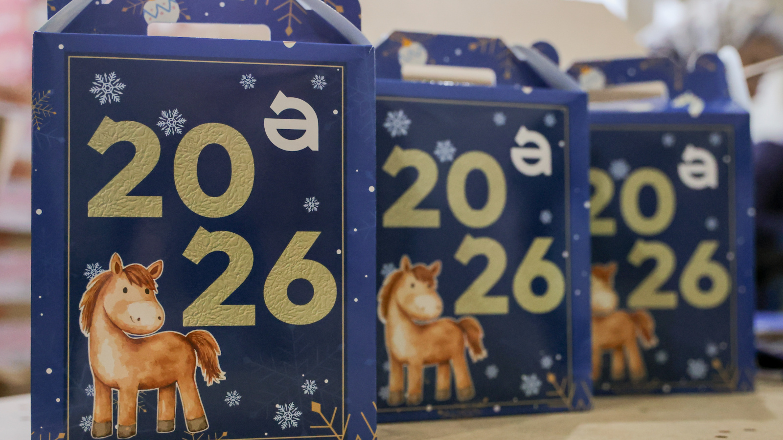 В этом году праздничные подарки от главы района Гюзель Хабутдиновой упакованы в специально разработанную красивую синюю коробочку. Лицевую сторону упаковки украшает яркое изображение символа наступающего года – грациозной лошади, а на оборотной стороне размещено теплое новогоднее поздравление от главы района, адресованное каждому ребенку.