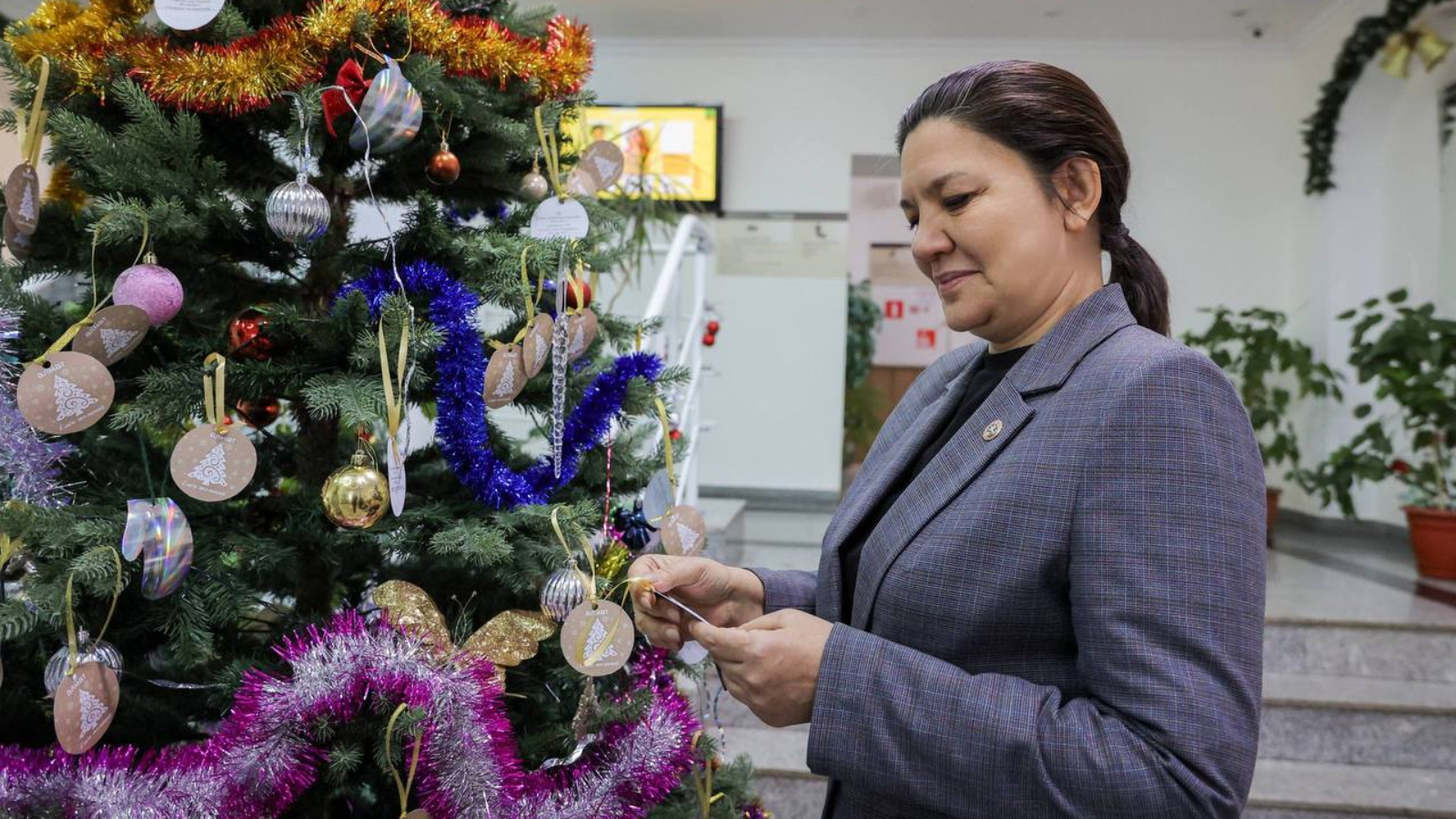 На праздничной ёлке, установленной в здании администрации, вместо привычных игрушек и гирлянд размещены яркие открытки в форме новогодних шариков. Каждая открытка содержит желание ребёнка, которое любой желающий может помочь исполнить.