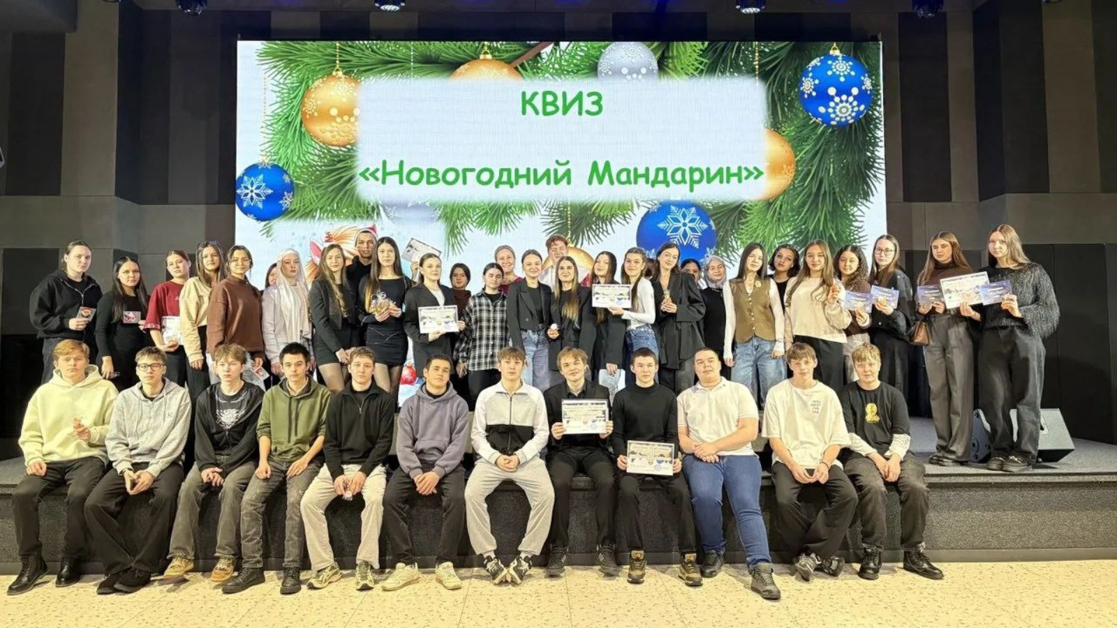 25 декабря в МЦ «Фабрика креативных процессов» прошел предновогодний интеллектуально-развлекательный квиз для студентов города «Новогодний мандарин». Это событие объединило 9 команд из средних специальных и высших учебных заведений, которые сразились в интеллектуальной битве, дополненной увлекательной программой. Участники продемонстрировали свои знания в самых разных областях — от кулинарии СССР до новогодних фильмов, от восточного календаря до мудрости русских пословиц, обогатив свои знания новыми интересными фактами.