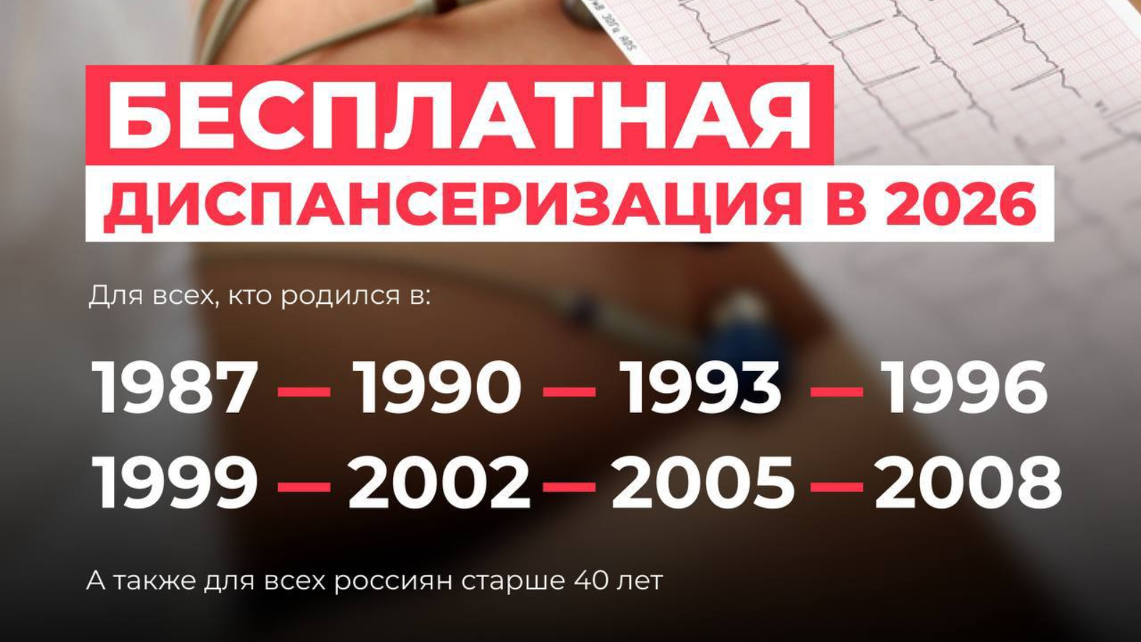Плановую проверку здоровья могут пройти граждане, родившиеся в следующие годы: