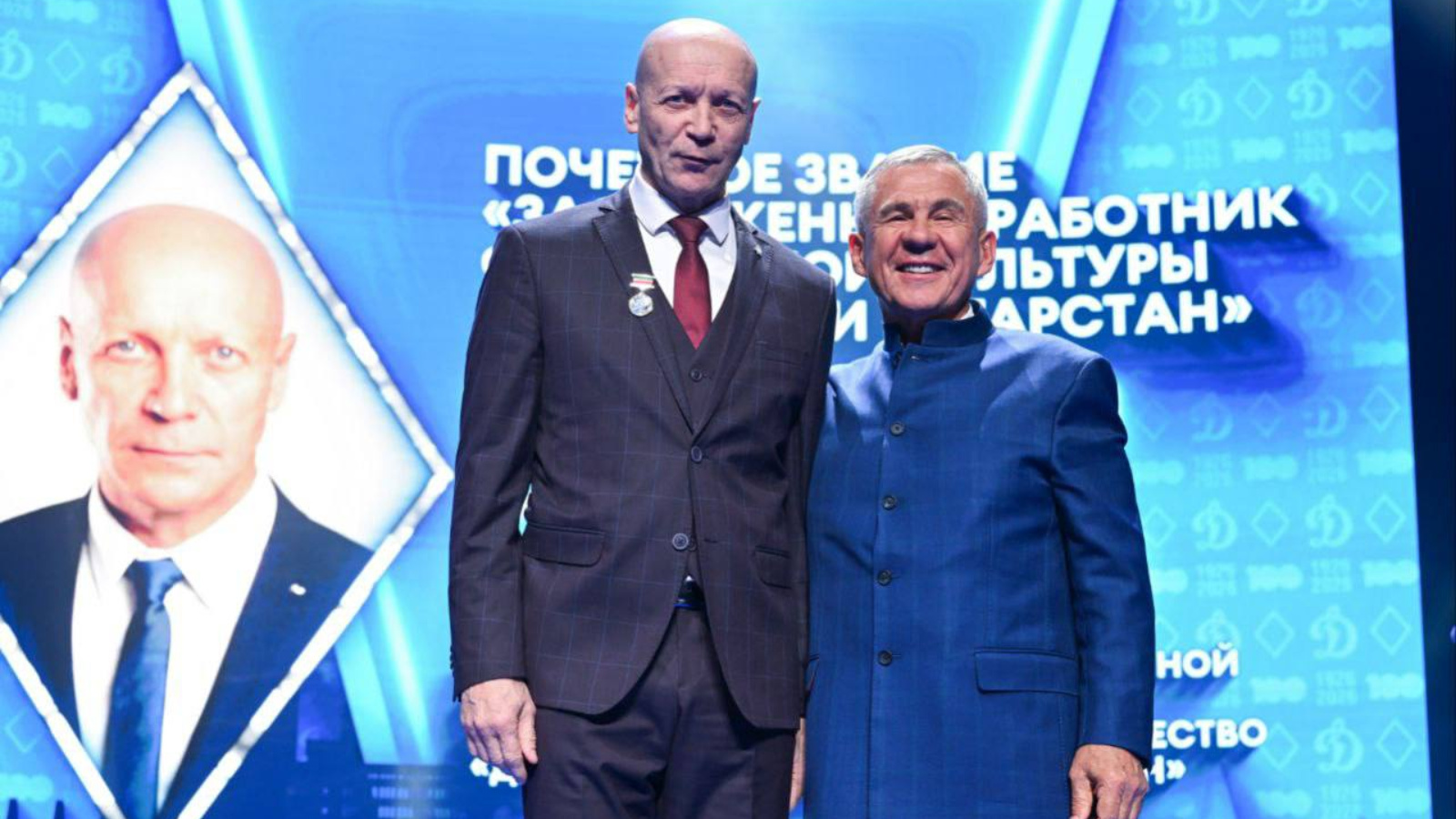 Раис Республики Татарстан Рустам Минниханов вручил Вячеславу Колотовкину нагрудный знак и удостоверение к почетному званию «Заслуженный работник физической культуры Республики Татарстан».